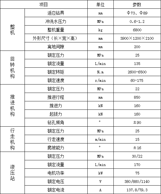1. 履帶行走,大大提高移鉆、穩(wěn)鉆的效率,顯著減輕工人的體力勞動強度;